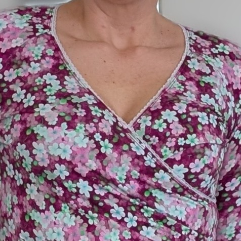 De overslag zorgt ook voor een V-hals wat weer een mooi decolleté geeft. De rok valt als een slanke A-lijn en volgt je figuur. De raglanmouwen volgen de bolling van je schouder en zijn aansluitend.