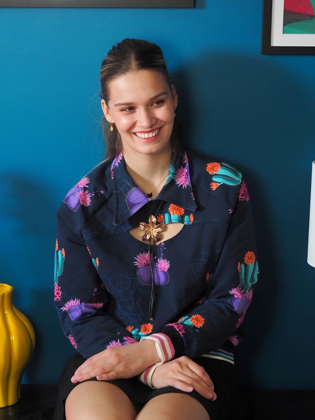 Dit is de stof met de donkergroene achtergrond.