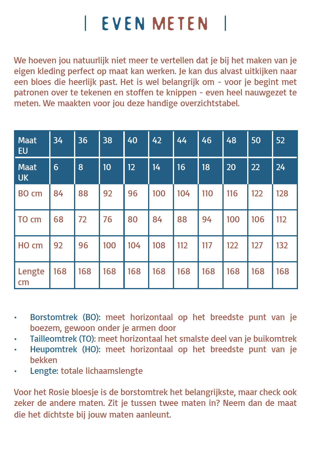 Het Rosie bloesje is er eentje om verliefd op te worden, met een fijne ronde hals en leuke pofmouwen. Het voorpand is doorgesneden in verschillende delen waardoor je je eigen creativiteit helemaal kan loslaten! Je kan contrasterende biesjes tof lintjes toevoegen tussen de naden, of verschillende kleuren stof combineren! Dit bloesje sluit je met een split en knoopje in de rug. Geen fan van de pofmouwen? Je kan Rosie ook met een rechte, korte mouw maken. Rosie is een match met zoveel prints en texturen, dat je ze helemaal naar je eigen stijl kan maken!